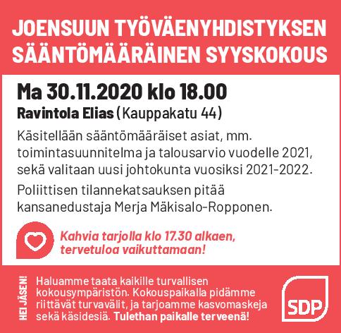 Jaa tämä artikkeli Facebook Twitter LinkedIn Edellinen artikkeli: SDP:n Joensuun kunnallisjärjestön syyskokous 18.11.2020 klo 18 Seuraava artikkeli: Merja Mäkisalo-Ropponen: Vammaisyrittäjyyden edellytyksiä vahvistettava